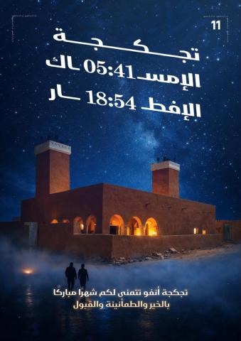 أظهرت الإمساكية الرسمية التي نشرتها وزارة الشؤون الإسلامية والتعليم الأصلي أن موعد الإمساك في الـ11 من أيام شهر رمضان المبارك لمدينة نواكشوط سيكون عند الساعة 05:59 صباحا.