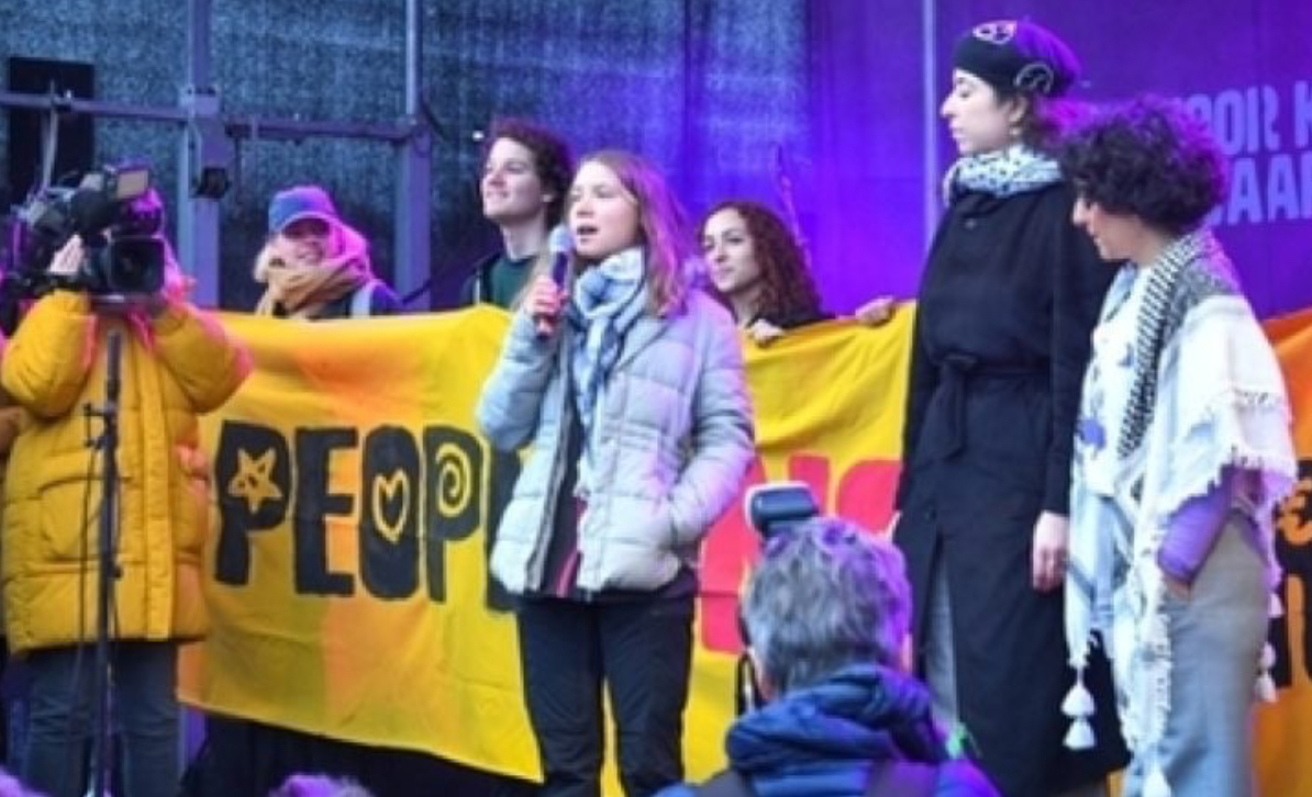 وكان من المقرر أن تقوم ثونبرغ، التي اشتهرت بتنظيم احتجاجات للمراهقين من أجل المناخ في بلدها السويد، بالرحلة إلى غزة في وقت سابق هذا الشهر على متن سفينة تابعة لتحالف أسطول الحرية، لكن السفينة تعرضت للتخريب أثناء رحلتها.