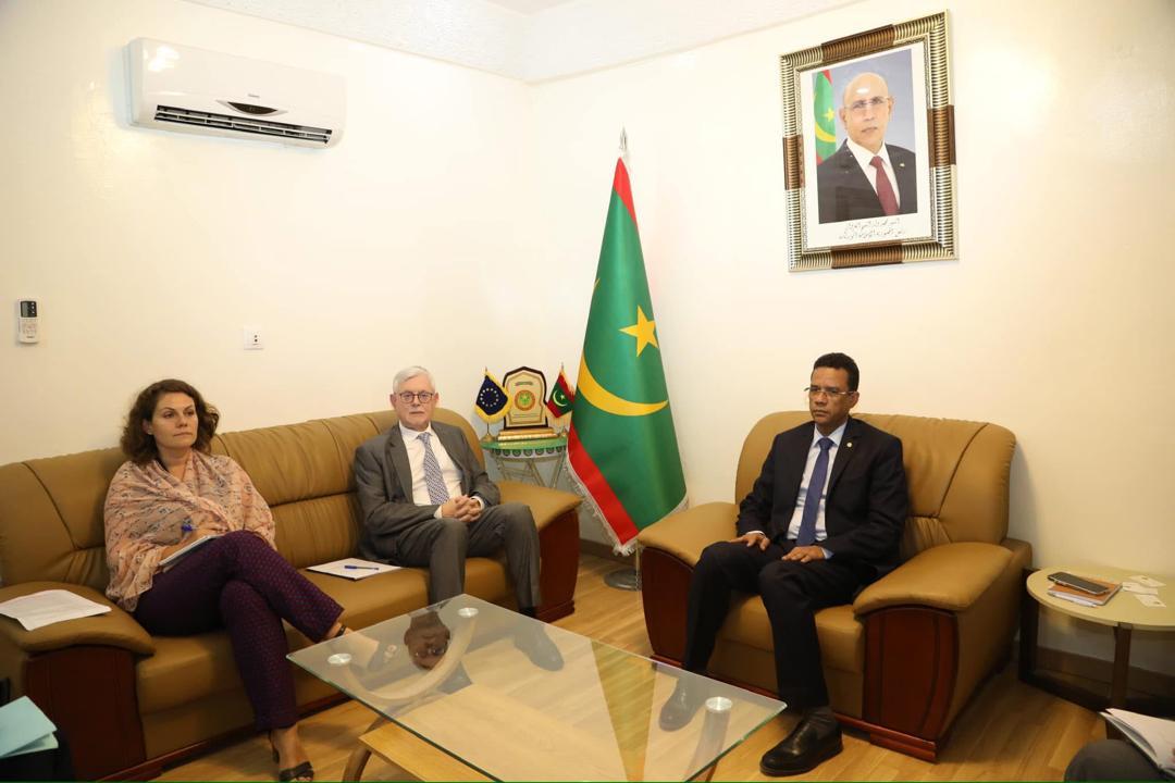 وتناول اللقاء علاقات التعاون بين موريتانيا والاتحاد الأوروبي وسبل تعزيزها وتطويرها، خاصة في مجال الصيد والبنى التحتية البحرية والمينائية.