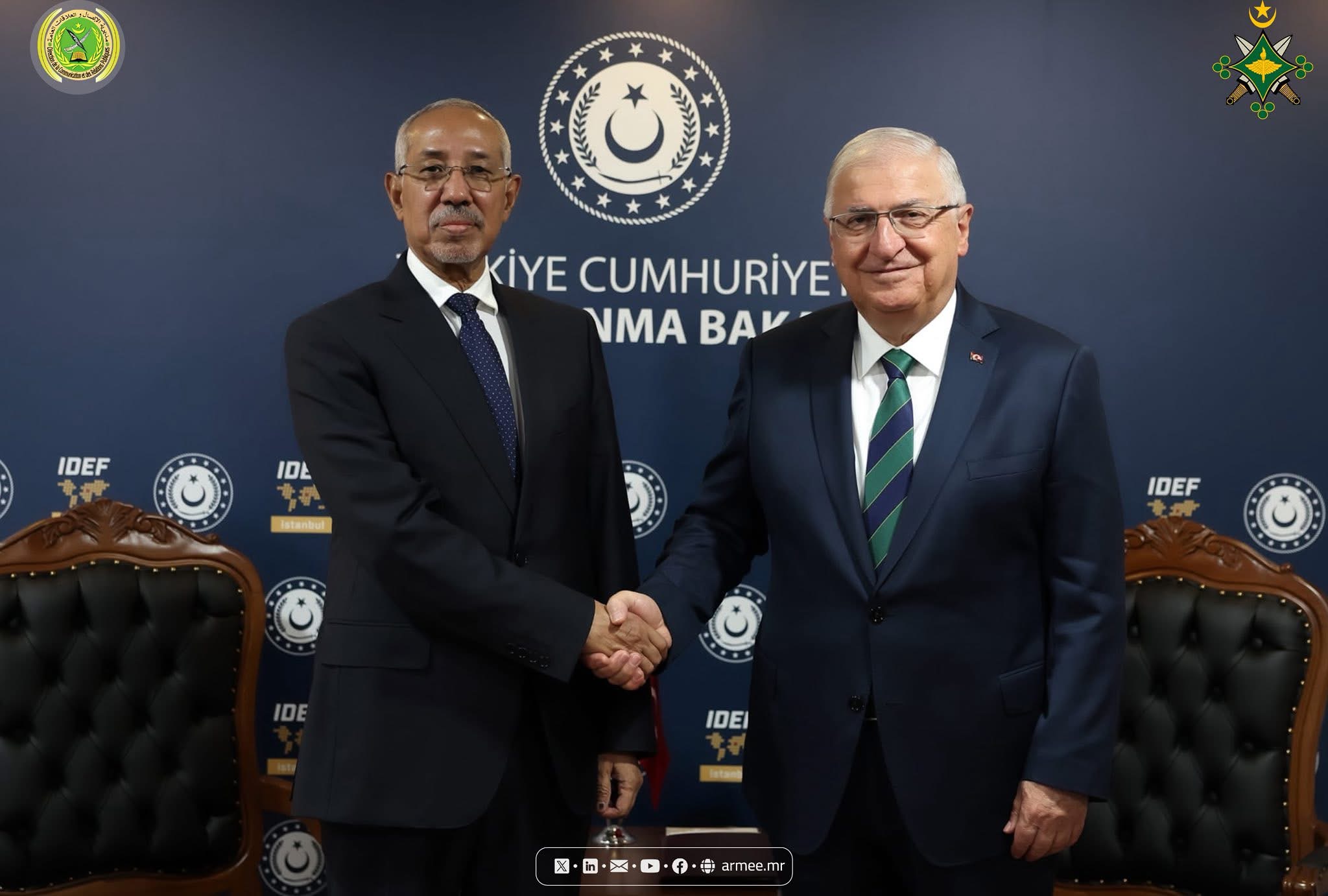 وقع وزير الدفاع حنن ولد سيدي، مذكرة تفاهم مع وزير الدفاع التركي يشار غولر، وذلك على هامش مشاركته في المعرض الدولي السابع عشر للصناعات الدفاعية (IDEF 2025)، المنعقد بمدينة إسطنبول.
