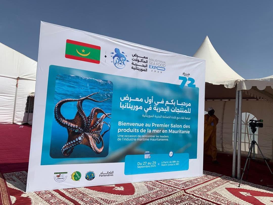 أشرف الأمين العام لوزارة الصيد سيد عالي سيد بوبكر، اليوم السبت، بالقرية السياحية في منطقة كبانو بانواذيبو، على افتتاح النسخة الأولى من معرض المأكولات البحرية الموريتانية.