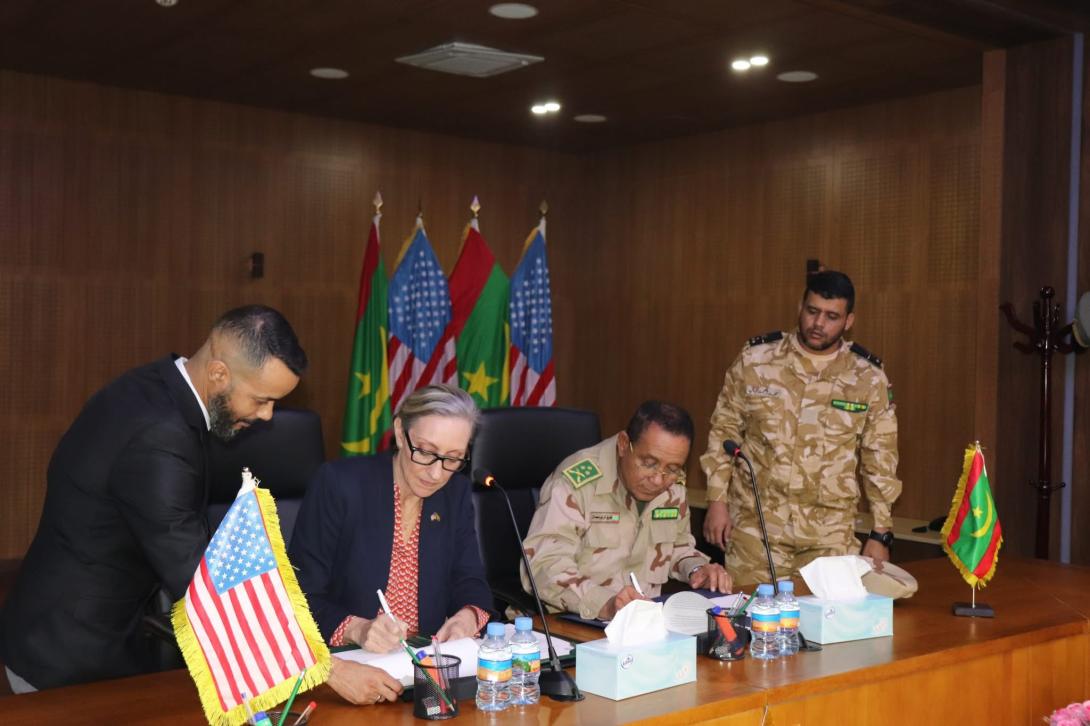 وقّعت القائمة بأعمال السفارة الأمريكية في موريتانيا، كورينا آر. ساندرز، اتفاقية مع قائد الأركان العامة للجيوش الموريتانية، الفريق محمد ولد الرايس، تقضي بنقل معدات عسكرية أمريكية إلى القوات المسلحة الموريتانية، بقيمة 3.6 ملايين دولار.