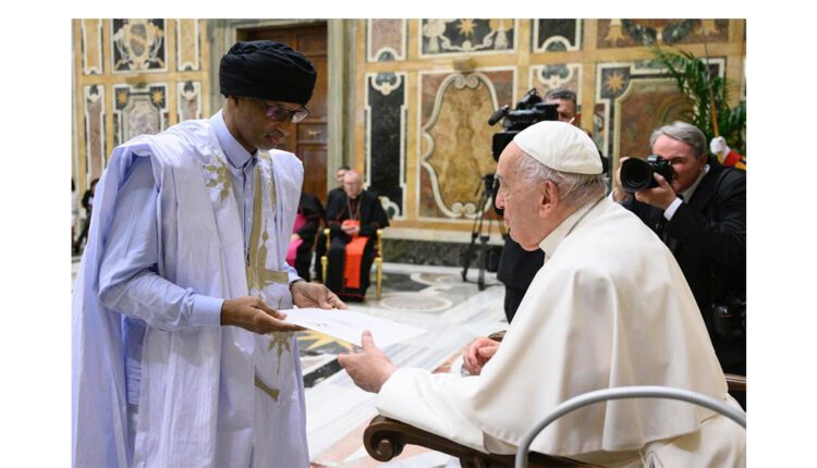 وخلال الحفل الذي جرى بحضور رئيس وزراء الفاتيكان ووزير خارجيتها، نقل السفير تحيات رئيس الجمهورية محمد ولد الشيخ الغزواني إلى البابا فرنسيس.