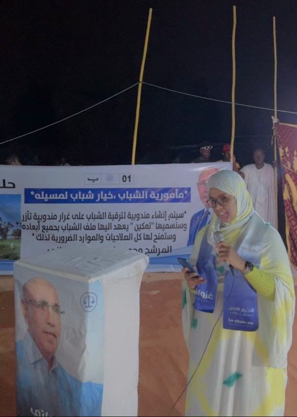 جاء حديث منت المهدي ولد أمبارك خلال نشاط سياسي نظمه حلف "اأمل" الداعم للرئيس محمد ولد الشيخ الغزواني في مقاطعة كنكوصه.