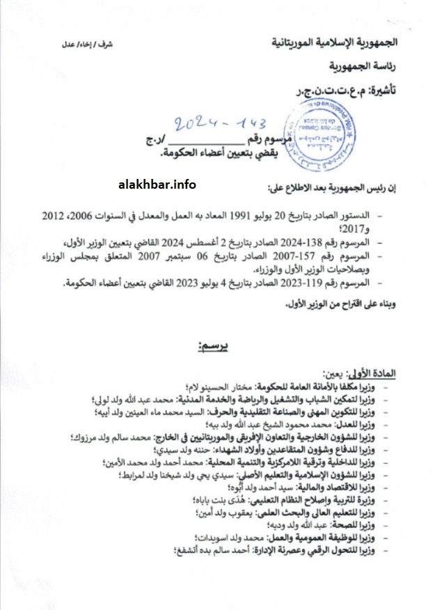 وفي المرسوم رقم: 143 – 2024، ظهرت الوزارة باسم: "وزارة العمل الاجتماعي والطفولة والأسرة"، كما كانت في الحكومة السابقة.