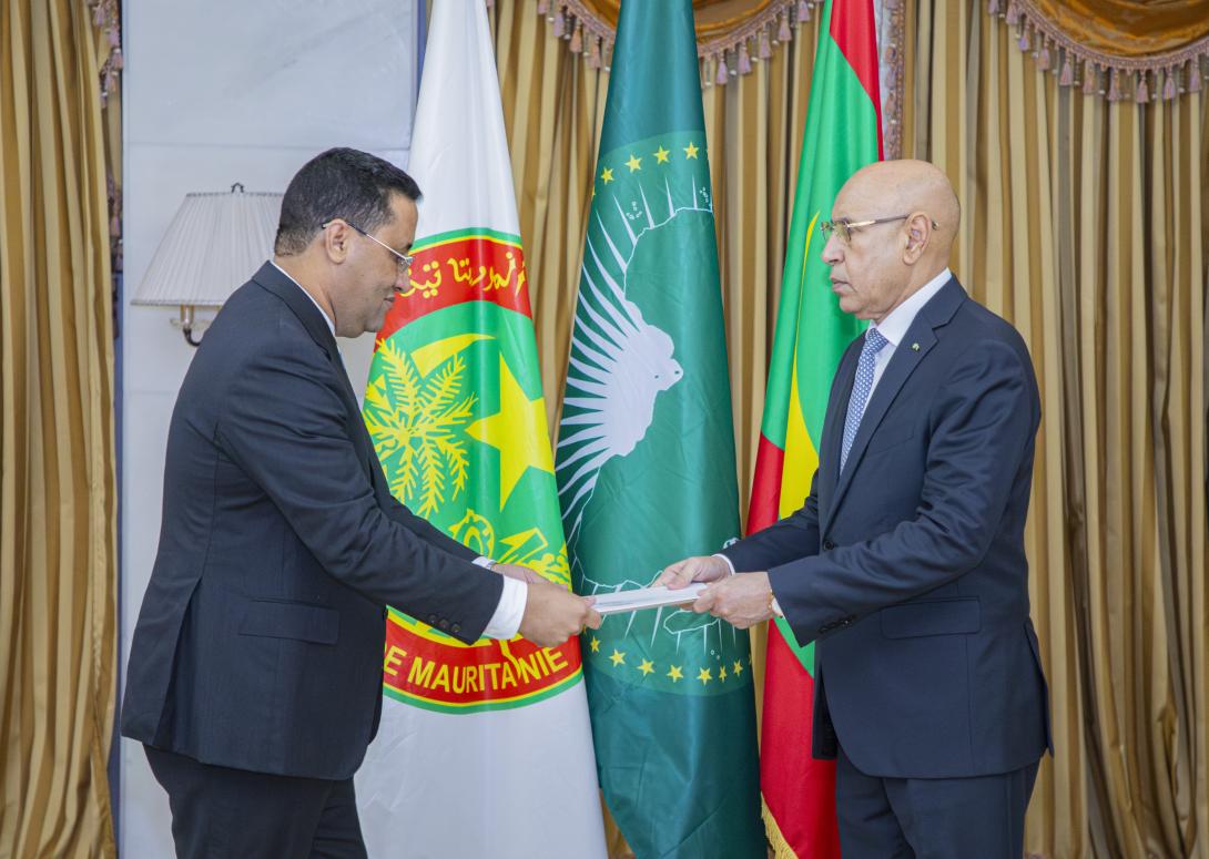 سلم الرئيس محمد ولد الشيخ الغزواني، اليوم الخميس، بالقصر الرئاسي، رسالة التكليف للوزير الأول المختار ولد أجاي.