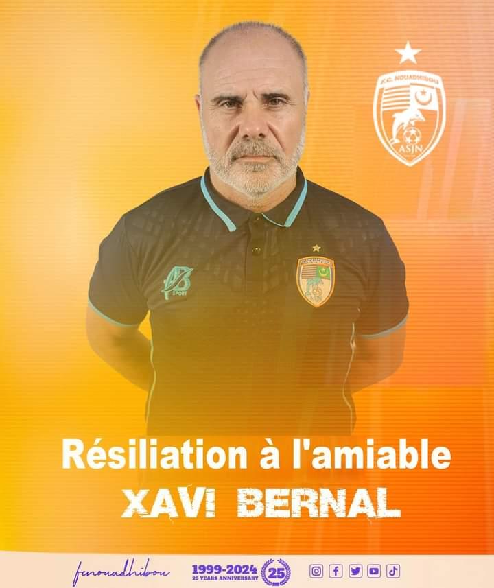 أعلن نادي أف سي نواذيبو عن إنهاء عقد مدربه الإسباني جافيير بيرنال غارسيا، بعد نحو 34 يوماً فقط من التعاقد معه.