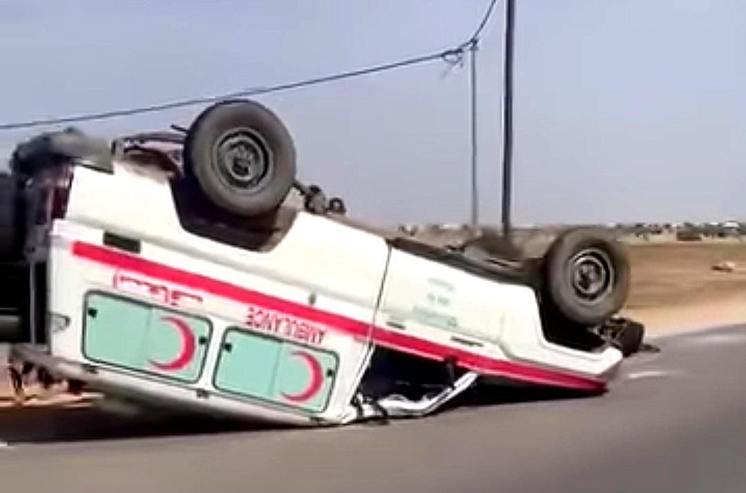 وأرجع شهود عيان انقلاب سيارة الإسعاف إلى السرعة التي كانت تسير بها، ومحاولة السائق تفادي حيوان ظهر أمامه على الطريق.