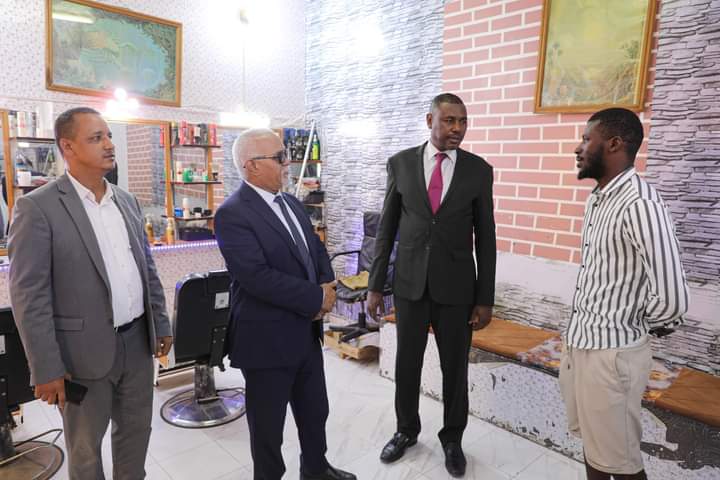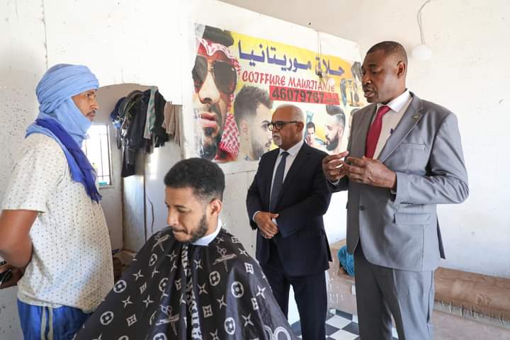 أدى الأمين العام لوزارة تمكين الشباب والتشغيل والرياضة والخدمة المدنية الناجي ولد خطري صحبة المدير العام للتشغيل منسق برنامج مهنتي حمادي ولد البكاي زيارة متابعة للمهنيين الذين يزاولون مهنتي الحلاقة وغسيل الملابس المستفيدين من برنامج تثمين العمل في الوسط الحضري.
