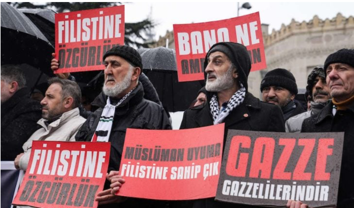 شهدت مدينة إسطنبول، الجمعة، مظاهرة منددة بخطة الرئيس الأمريكي دونالد ترامب للاستيلاء على قطاع غزة وتهجير الفلسطينيين قسرًا من أراضيهم.