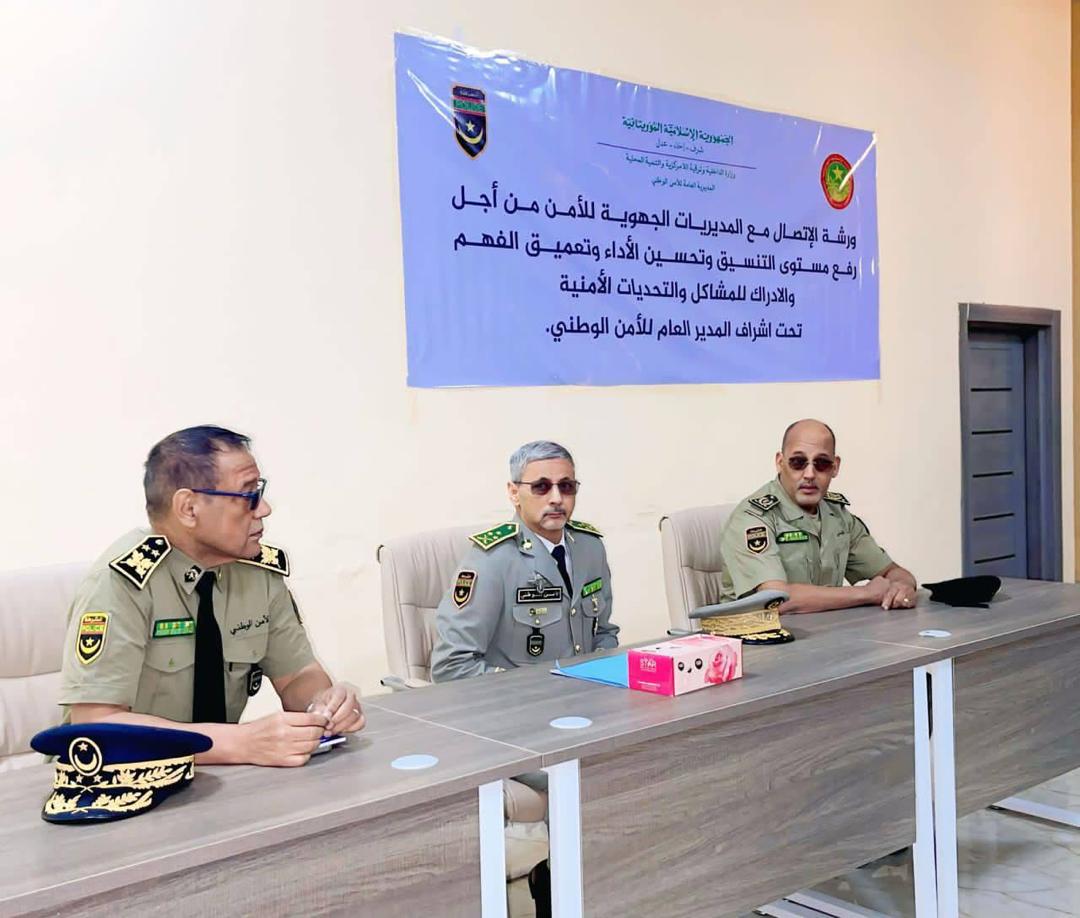 أشرف المدير العام للأمن الوطني الفريق محمد الشيخ محمد الأمين، اليوم الاثنين، على انطلاقة ورشة الاتصال مع طواقم قيادات المديريات الجهوية للأمن بنواكشوط التي حضرها إلى جانبهم طواقم قيادات التجمعات الخاصة بحفظ النظام والأمن العمومي والمرور ورؤساء المكاتب المركزية بالمديرية العامة للأمن الوطني.