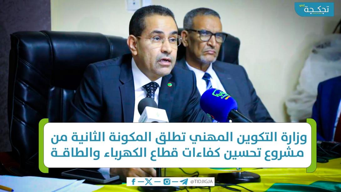 أشرف الأمين العام لوزارة التكوين المهني أمادي ولد الطالب على إطلاق المرحلة الثانية من مشروع تحسين كفاءات قطاع الكهرباء، والذي يهدف إلى إنشاء إطار قطاعي تشاركي لتعزيز التعاون بين قطاع التكوين المهني والقطاع الخاص.