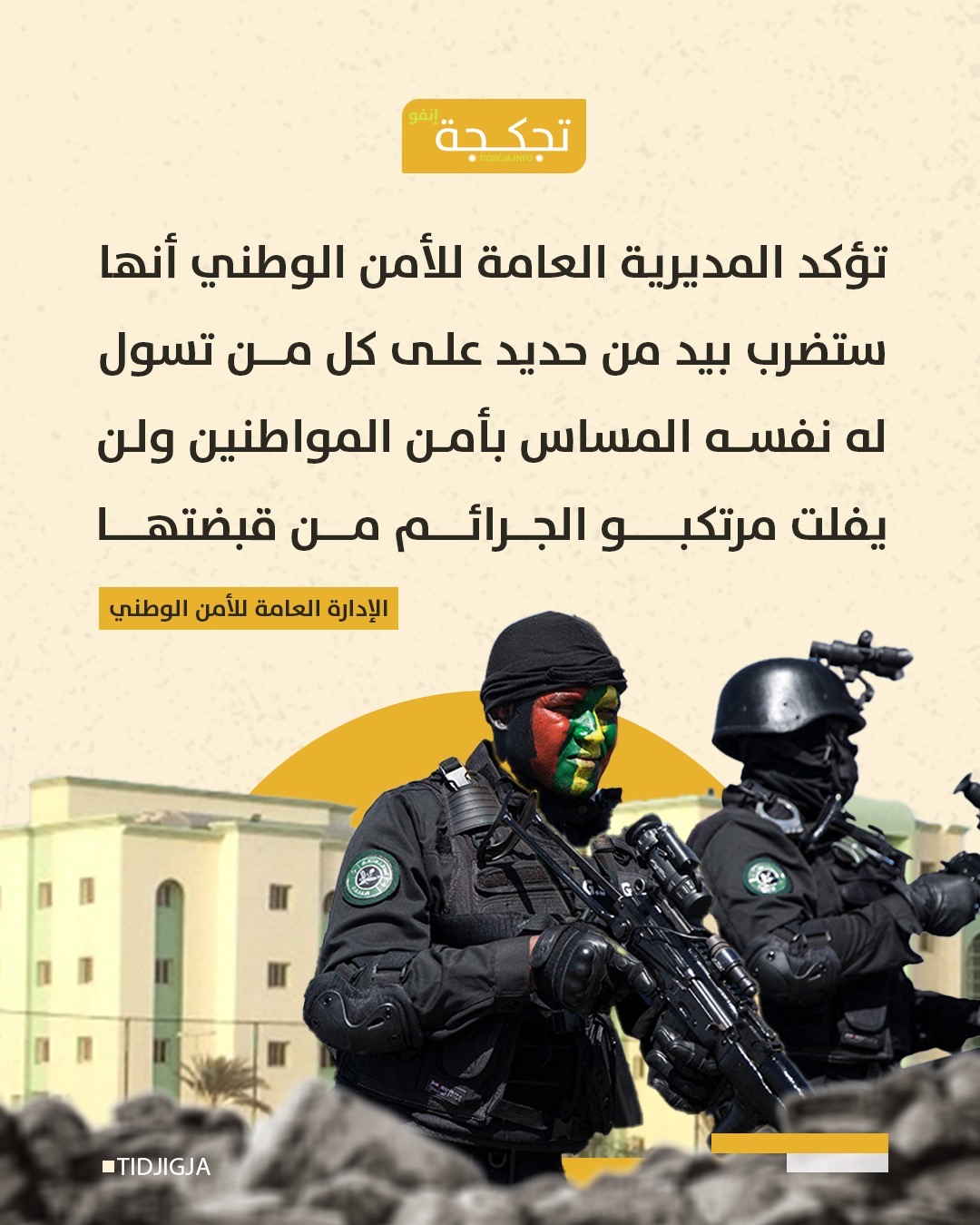 قالت المديرية العامة للأمن الوطني إنها ستضرب بيد من حديد على كل من تسول له نفسه المساس بأمن المواطنين.