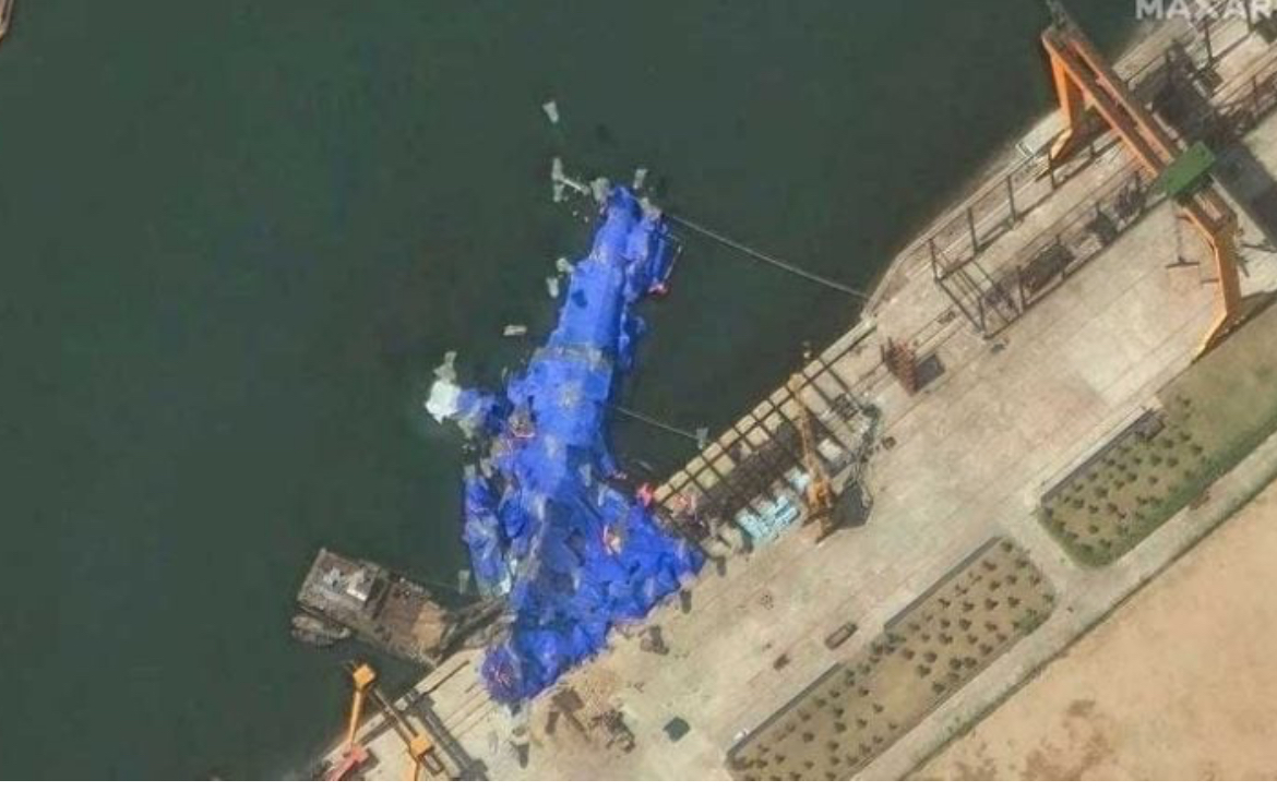 وتضررت المدمرة البالغ وزنها 5 آلاف طن يوم الأربعاء الماضي بحضور كيم عندما انفصل مهد النقل الموجود في مؤخرة السفينة مبكرا خلال حفل تدشين في ميناء تشونغجين شمال شرقي البلاد. وأظهرت صور الأقمار الصناعية للموقع السفينة ملقاة على جانبها ومغطاة بأغطية زرقاء، مع غرق أجزاء منها.