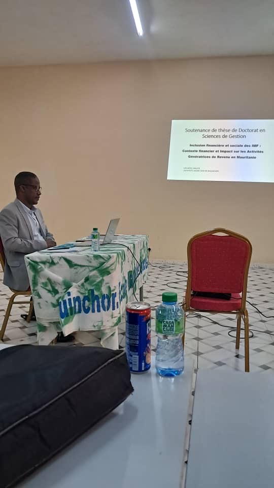 ناقش الباحث الموريتاني سيدي ولد عبد المالك، يوم الثلاثاء الماضي، أطروحة لنيل شهادة دكتوراه في تخصص المالية بعنوان: "الشمول المالي والاجتماعي لمؤسسات التمويل الأصغر: السياق المالي والتأثير على الأنشطة المدرة للدخل بموريتانيا" INCLUSION FINANCIERE ET SOCIALE DES AGR :CONTEXTE FINANCIER ET IMPACT SUR LES ACTIVITES GENERATRICES DE REVENU EN MAURITANIE. وجرى النقاش بقاعة المؤتمرات بجامعة الحسن سك العمومية.