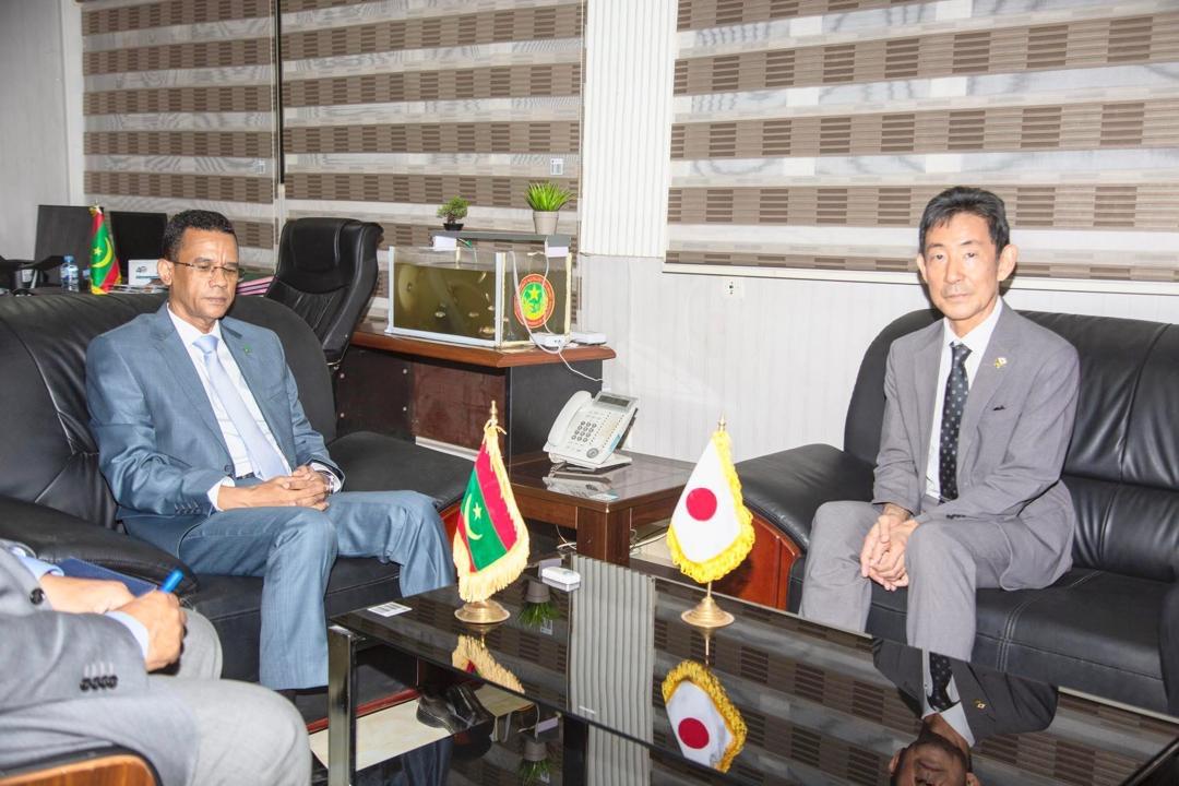 وتناولت المباحثات علاقات التعاون بين موريتانيا واليابان وسبل تطويرها، خصوصًا في مجالات الصيد والبحوث البحرية والبنى التحتية المينائية.