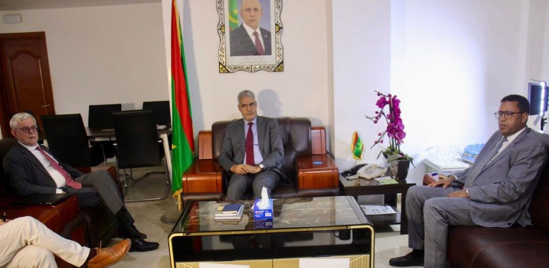 جاء ذلك خلال استقباله اليوم الثلاثاء بمكتبه في نواكشوط، سفير الاتحاد الأوروبي المعتمد لدى موريتانيا، تاسو فيلالونكا، حيث تم بحث علاقات التعاون بين الجانبين وسبل تطويرها، خاصة في مجالات الزراعة والسيادة الغذائية.