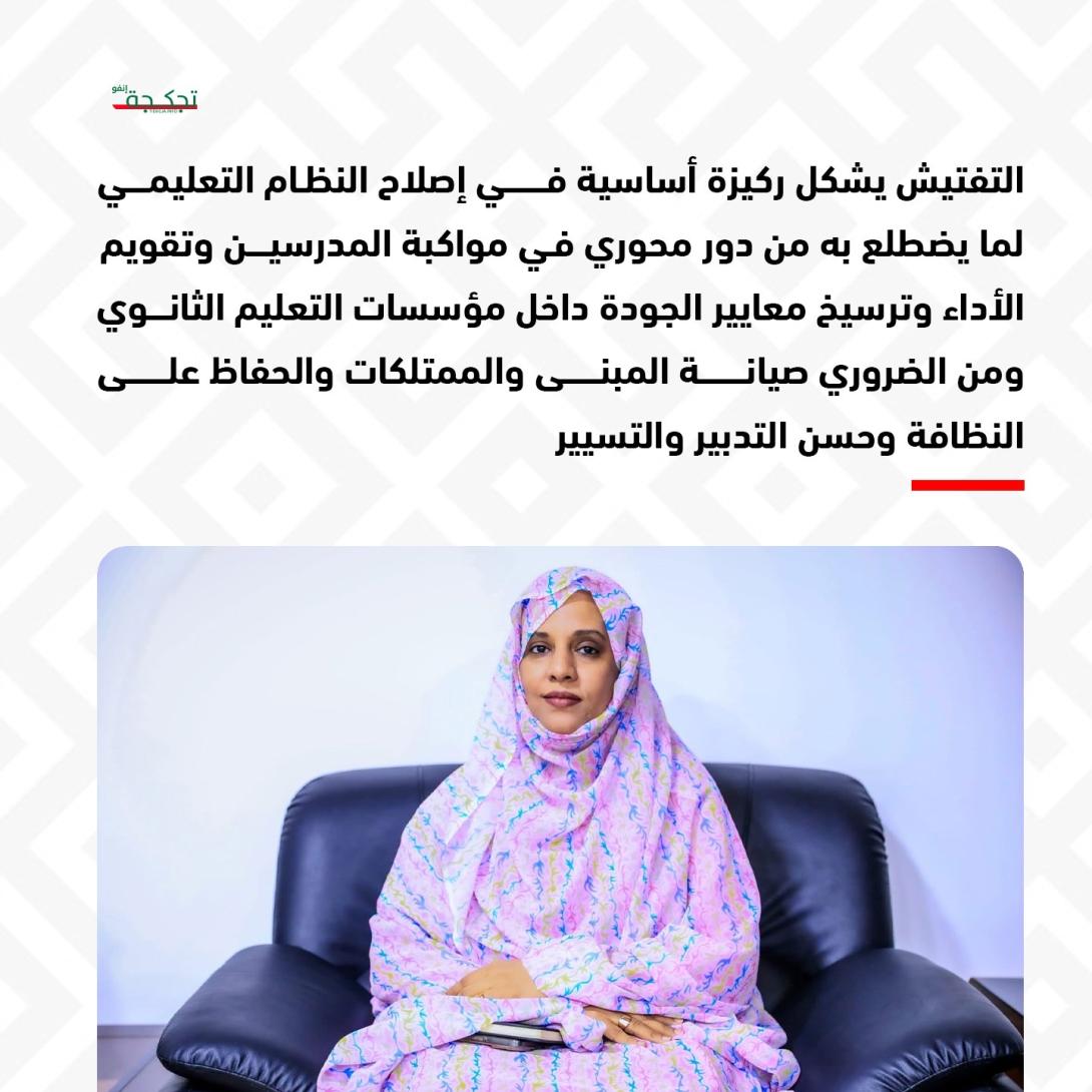 قالت وزيرة التربية وإصلاح النظام التعليمي هدى منت باباه إن التفتيش يشكل ركيزة أساسية في إصلاح النظام التعليمي.