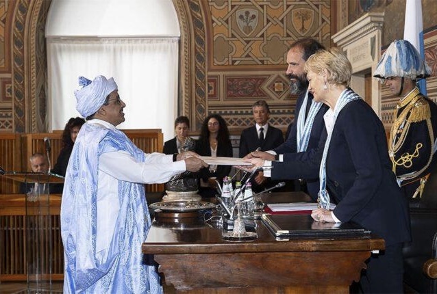 قدم السفير محمد محمود ولد داهي، أول أمس الخميس بالعاصمة سان مارينو، أوراق اعتماده للنقباء الأوصياء على جمهورية سان مارينو، ميلينا جاسبروني، وآليخاندرو روسي بصفته سفيرا فوق العادة وكامل السلطة، مقيما في روما.