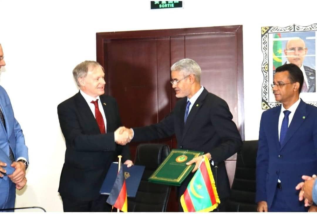 وقعت وزير الاقتصاد والمالية سيد أحمد ولد ابوه وسفير ألمانيا في موريتانيا، اليوم الخميس، اتفاقية تعاون لتمويل مشروع دعم تنفيذ الإستراتيجية الوطنية لقطاع الصيد، يبلغ غلافها المالي 20 مليون يرور موجهة لتمويل عدد من المشاريع في مجال الصيد والاقتصاد البحري.