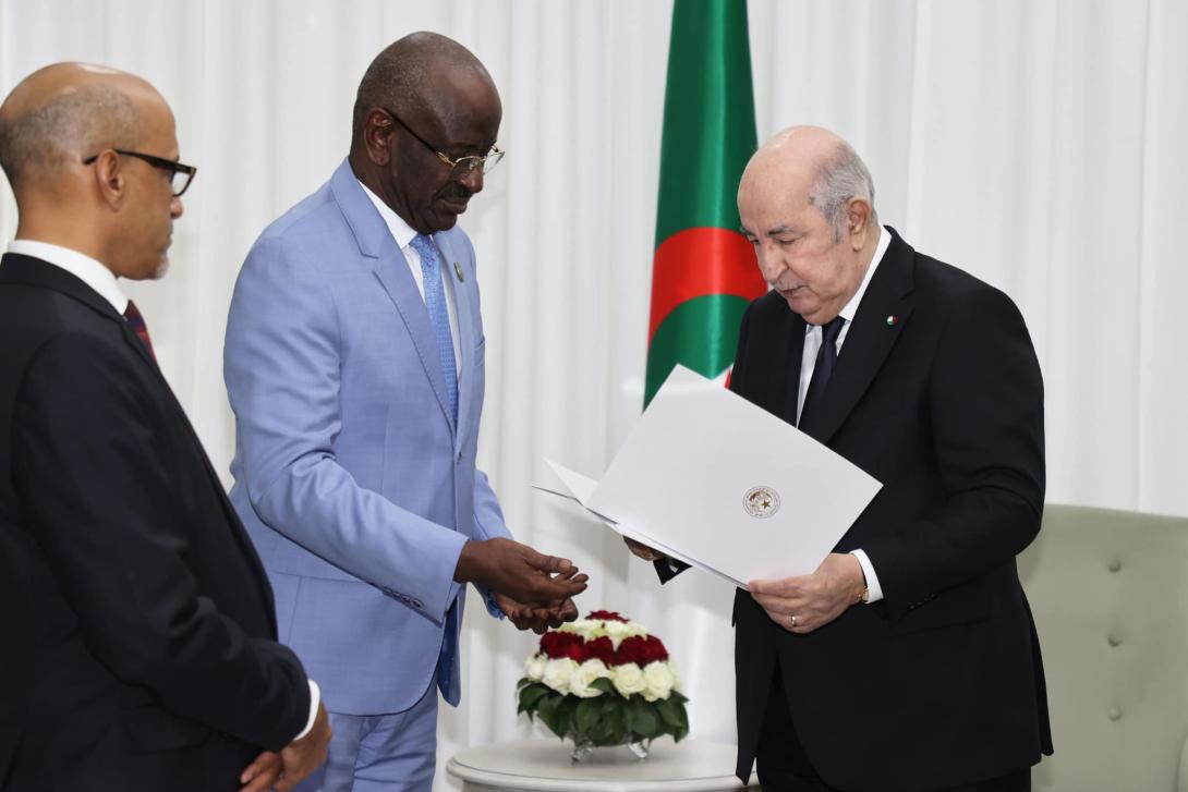 تسلم الرئيس الجزائري عبد المجيد تبون اليوم الخميس رسالة خطية من الرئيس محمد ولد الشيخ الغزواني، تتعلق "بالتشاور بين البلدين"، وتولى تسليمها وزير الخارجية والتعاون الإفريقي محمد سالم ولد مرزوك.