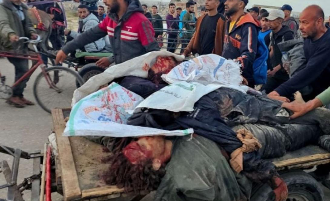 ووجهت إسرائيل، وفق البيان، الفلسطينيين نحو طريق “يُفترض أنه آمن ثم استهدفتهم برصاص مُسيّرات كواد كوبتر وقذائف الدبابات بمجزرة هي الأكبر بحق المُجوَّعين”.