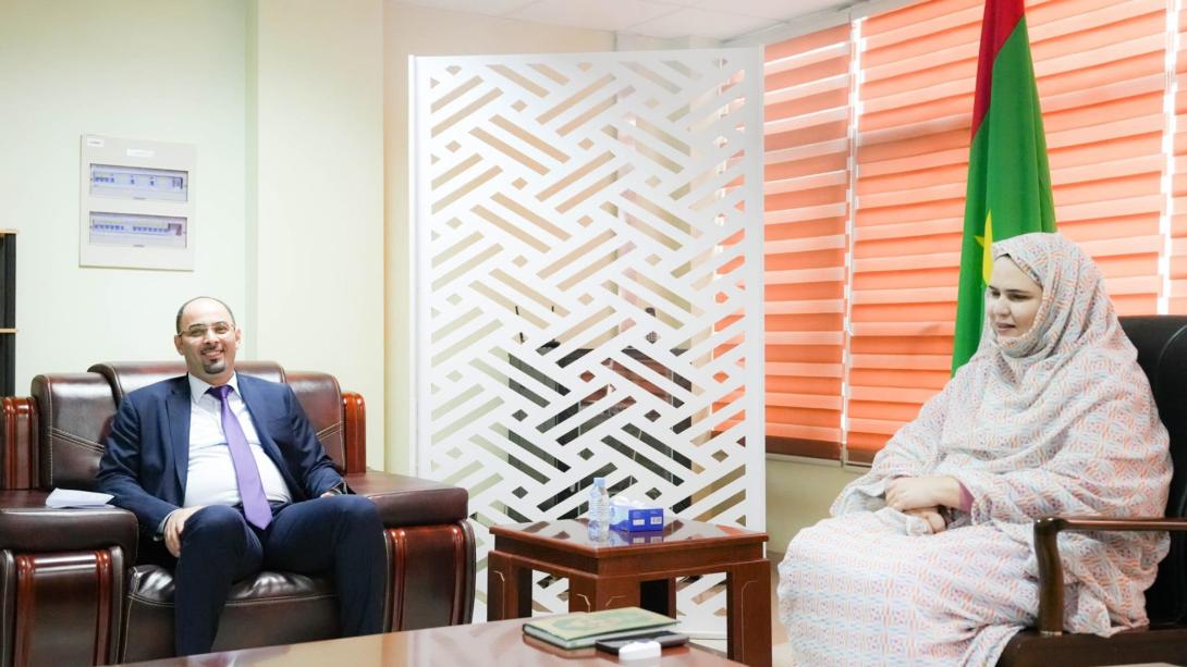 أجرت وزيرة التجارة والسياحة زينب أحمدناه، اليوم الأربعاء، مباحثات مع سفير الجزائر المعتمد ادى موريتانيا أمين صيد.