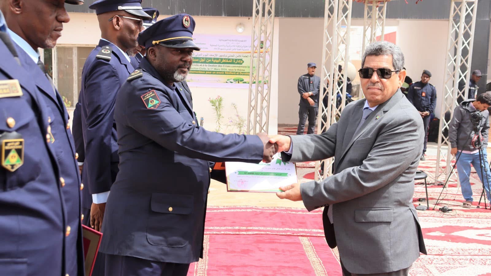 كما تقدم المندوب العام للأمن المدني بخالص تشكراته لقيادة أركان الحرس الوطني ولشركائنا الدوليين ولكل من ساهم من قريب أو بعيد في تكوين هذه الدفعة.